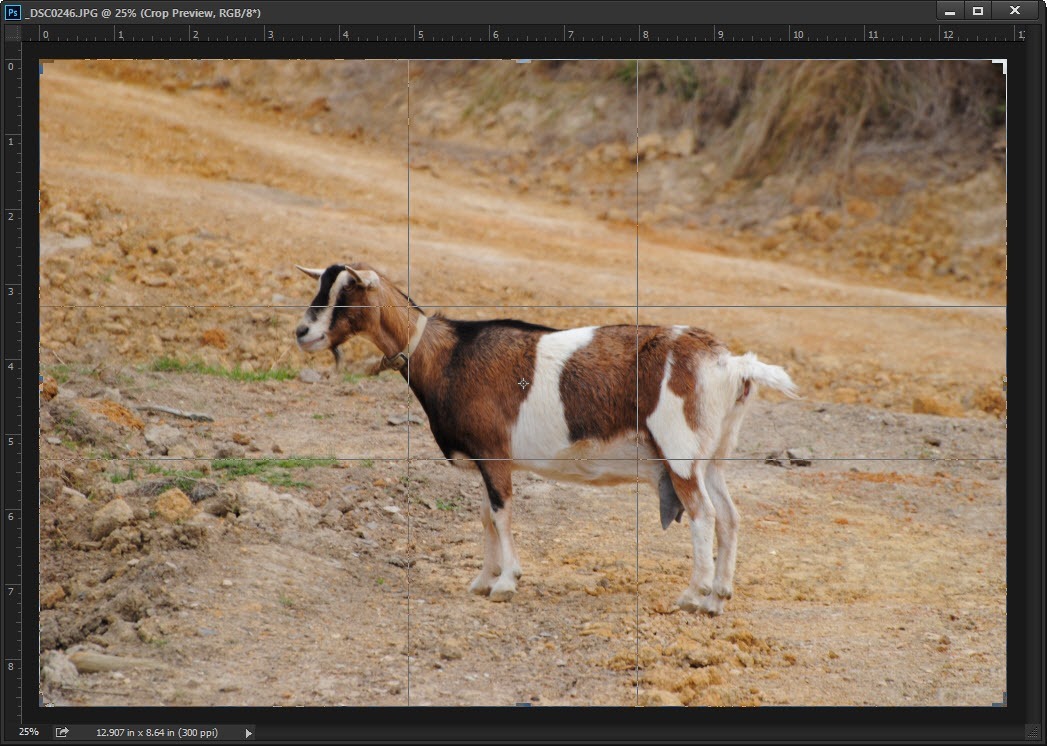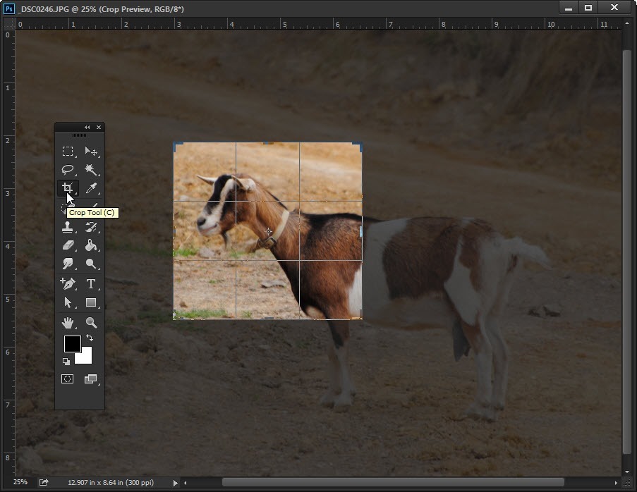 Notice the dimmed area that appears outside of the cropping border. This is the bit that will get cropped away.