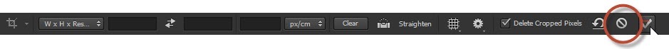 Stepping back a little, if you want to cancel a crop while the cropping border is still on your image, you can either press Esc on the keyboard or, click on the Cancel Crop icon in the Options bar at the top of the screen.